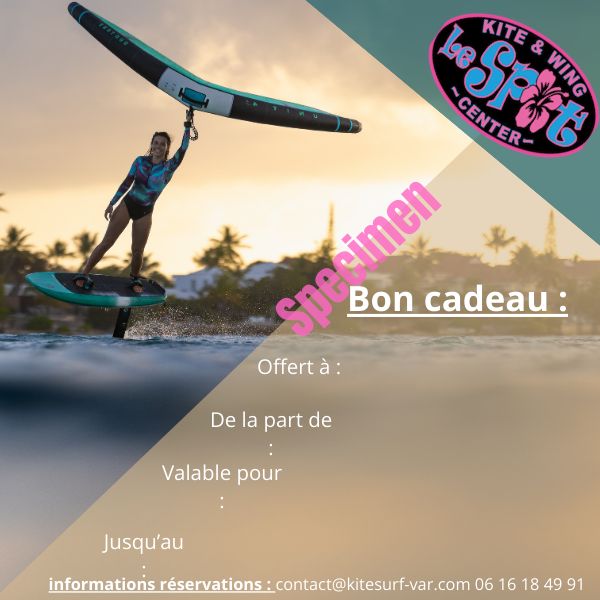 Un bon cadeau pour 1 cours de Wingfoil, d’une durée de 3h30, location de matériel duotone incluse. Un moniteur pour 4 stagiaires, cours de wingfoil dans la baie de la Bergerie ou de l’Almanarre.