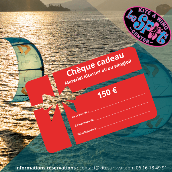 Un Chèque cadeau d’une valeur marchande de 150€ à dépenser dans du matériel d’occasion de kitesurf.