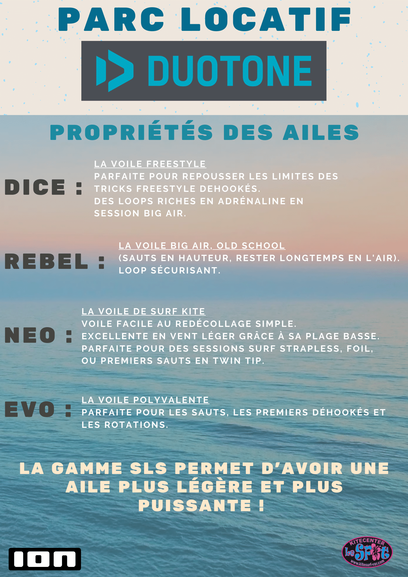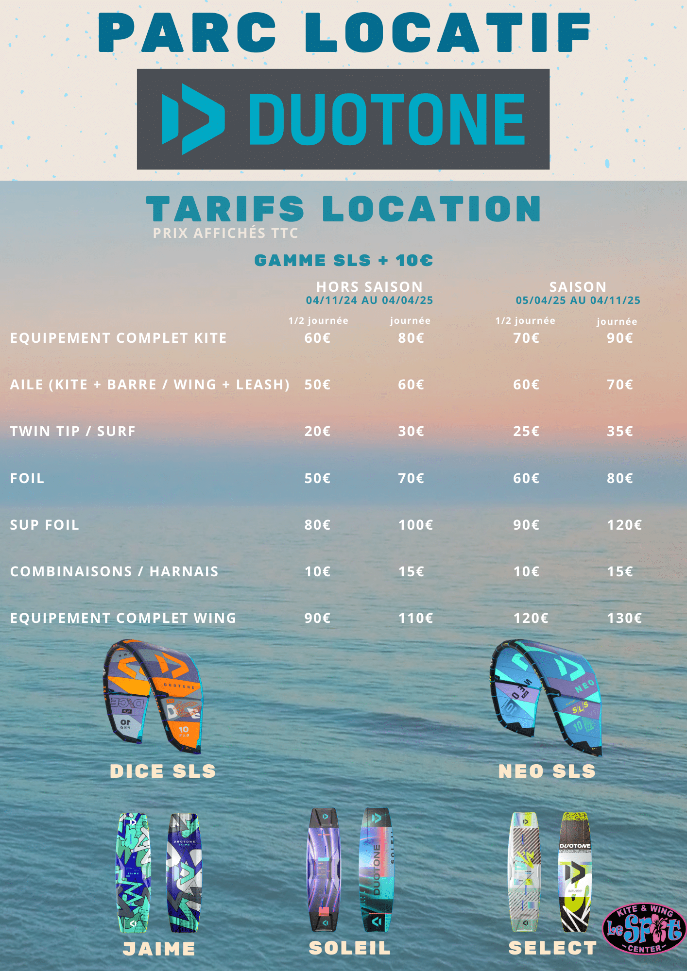 As a Duotone test center, we offer the latest 2025 Duotone Kiteboarding equipment for rent. It’s a great opportunity to come and enjoy a session at the Almanarre or Mérou spot in Hyères. If you purchase any Dice, Neo, or Evo kite after your session, the rental fee will be waived.